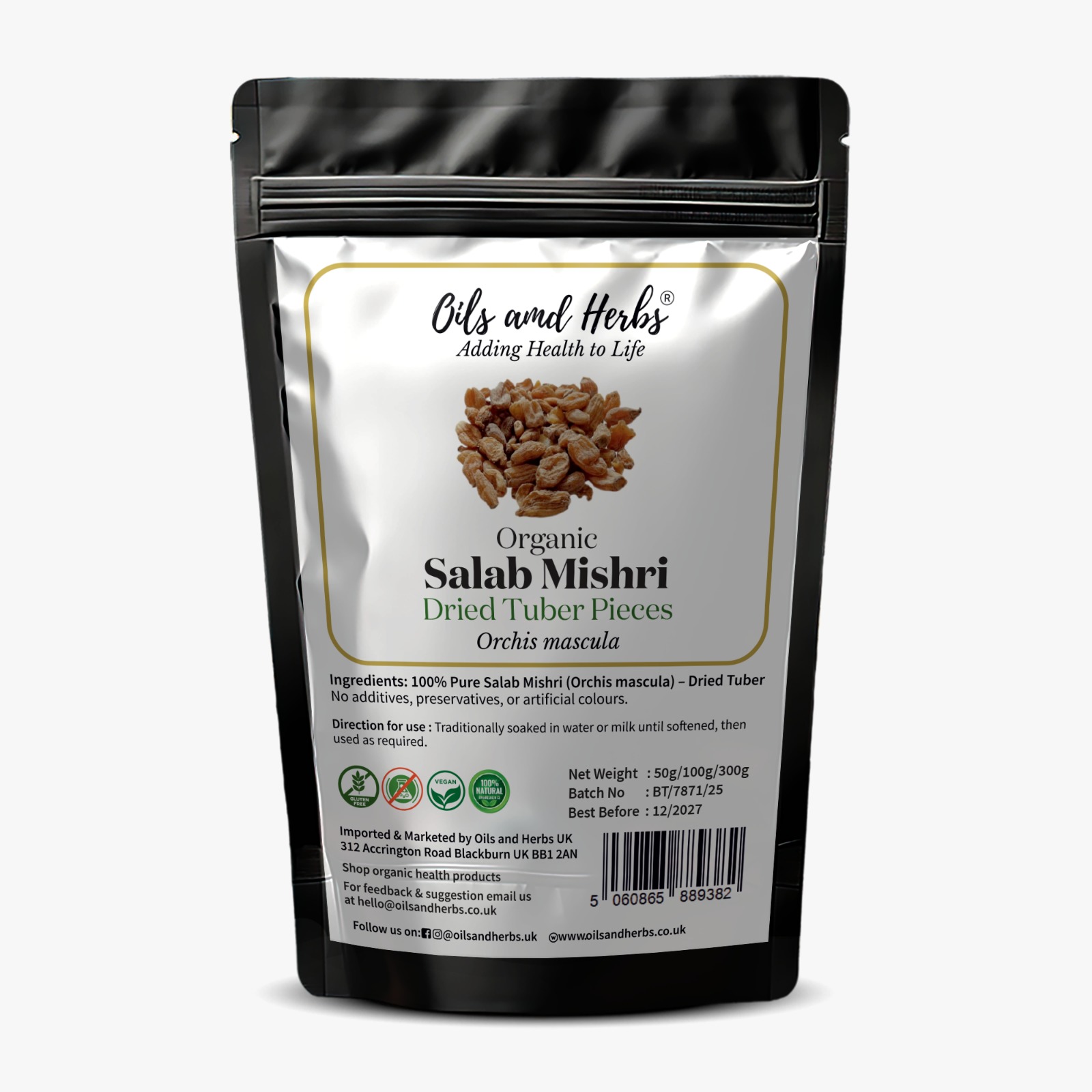 At Oils and Herbs UK, we focus on purity, authenticity, and proper botanical identification to ensure you receive genuine Salab Mishri dried tuber, free from additives, fillers, or artificial processing.